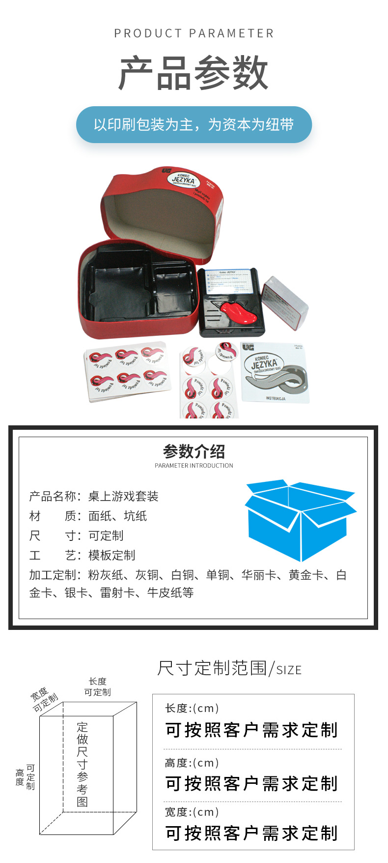 目前我公司已服务于多家各行业大型企业,我们愿紧紧掌握市场方向,服务客户,服务社会。诚信经营。竭诚为社会各界提供质优的印刷纸品包装服务。承接国内外印刷及包装设计业务, 同进大力开发各种教育类玩具套装及成品桌游套装!
